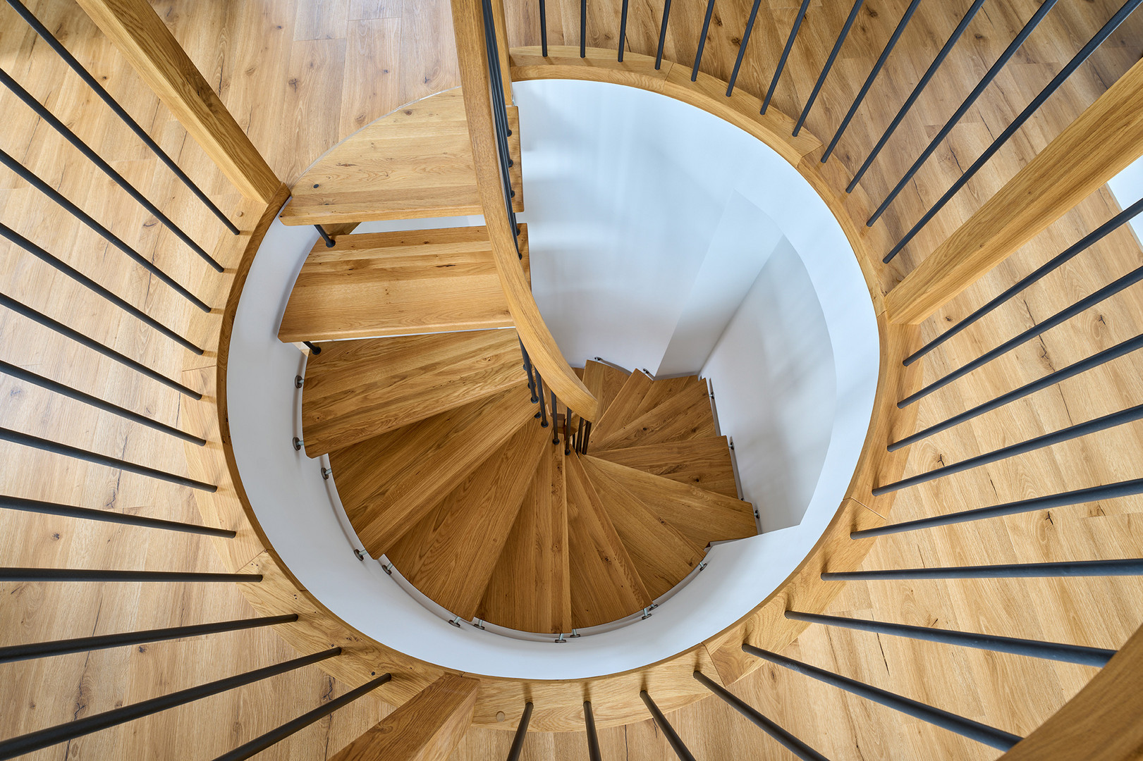 Holz- und Stahlgeländer, Eiche, Holz, Stahl, Modern, Zeitlos, Wendeltreppe